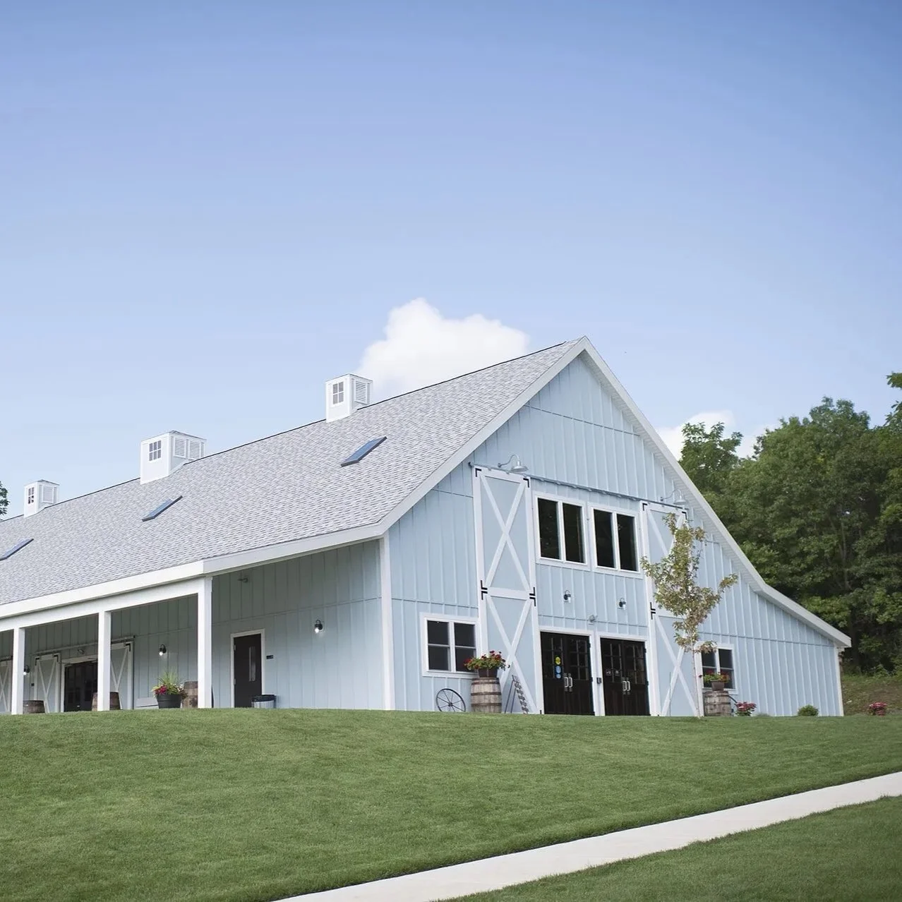 A quintessential country barn set amidst rolling hills, ideal for rustic weddings and events that desire a touch of rural charm.
